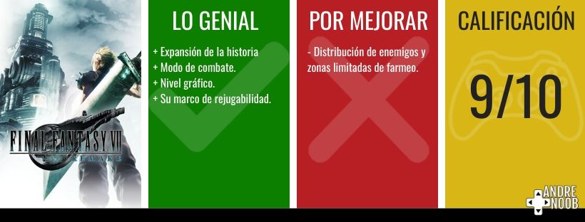 Más allá de una reinvención, Final Fantasy VII Remake busca ser el sucesor espiritual de su propia marca y llevar a los jugadores al universo que se ha creado, mostrando de una forma más madura y actualizada los sucesos que en su momento lo hicieron un icono y arriesgándose ampliar el marco argumental con nuevos personaje y grandes cambios, siendo una experiencia nueva en todos los sentidos y que más allá del original, vale la pena jugar y disfrutar, sin prisa y con calma, porque Midgard es más grande de lo que imaginamos.