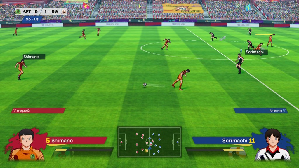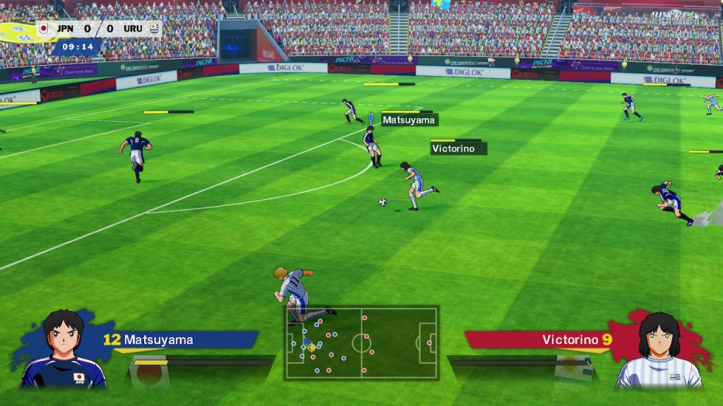 La interacción directa del jugador con los jugadores se hace por medio del control, donde el sistema usa la estructura de un juego de futbol tradicional para añadir los apartados fantásticos y hacer de la cancha el lugar que recordamos. Para esto cada jugador cuenta con un medidor de energía, que le permitirá hacer los regates de las animaciones y los poderosos tiros, que la mayoría de las veces están acompañados de las icónicas cinemáticas, sin contar que también se cuenta con un sistema de afinidad, que dependiendo el equipo o los jugadores, permitirá hacer uso de ciertas técnicas que a más de uno lo harán gritar.