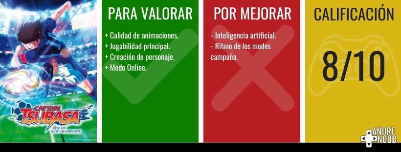 En resumen, Captain Tsubasa: Rise of New Champions es un título pensado para sus fans, que toma lo mejor de su marca para ofrecer el juego más grande su franquicia y aprovecha eso para llevar el nivel de simulación a cumplir el sueño de todo aquel que tenga alma niño y que alguna vez quiso estar en la cancha con Tsubasa y compañía.
