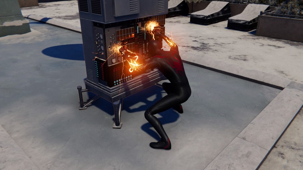 El titulo cuenta con unos tiempos de carga reducidos y mínimos, que hace que el jugador pueda disfrutar rápidamente de cada aventura y recorra la ciudad sin problemas. Como al mismo tiempo, hace uso de herramientas del control como la bocina para reproducir el sonido del lanzamiento de la telaraña o la pantalla táctil para abrir la app de spidey. Sumado a eso tenemos un mapeo diferente de los comandos básicos, que agregan el manejo del veneno con L1. Dejando R1 para el uso de los gadgets y su administración.