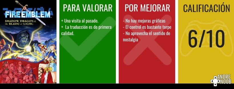 Este título es una manera de comparar que tanto ha avanzado el concepto de los RGP a lo largo de los años, pero en términos modernos no logra el impacto que se espera, los amantes de la saga Fire Emblem podrán disfrutarlo, pero aparte de los fans pocos lo encontraran atractivo.