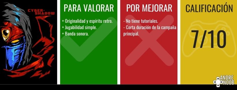 Cyber Shadow es un título que funciona bien. Que tiene una narrativa interesante y que le apuesta al aire de la SNES, para ser único. Hablando de la actualidad. Lo que puede ser un placer para muchos jugadores que disfrutaron de esa consola. Siendo el punto de partida para los jugadores que son hoy.