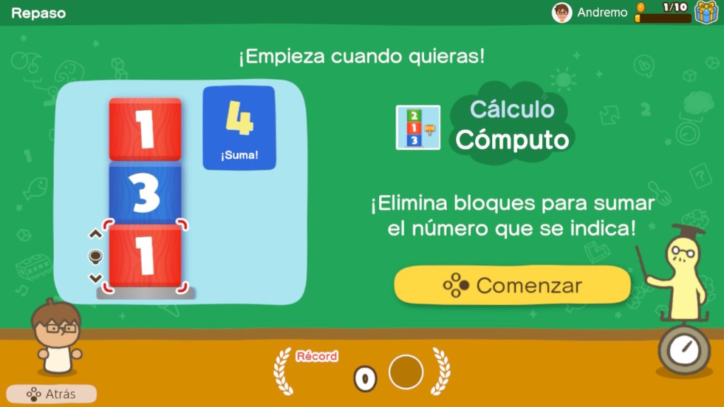 Como principal atractivo esta el modo repaso, con el cual los jugadores tendrán que ver el nivel que manejan sobre los diferentes temas y cual de ellos es su fuerte. El desempeño de cada actividad es medido con estrellas y medallas, que se van otorgando según lo realizado, dando mejor calificación si se hace de forma correcta y en el menor tiempo.