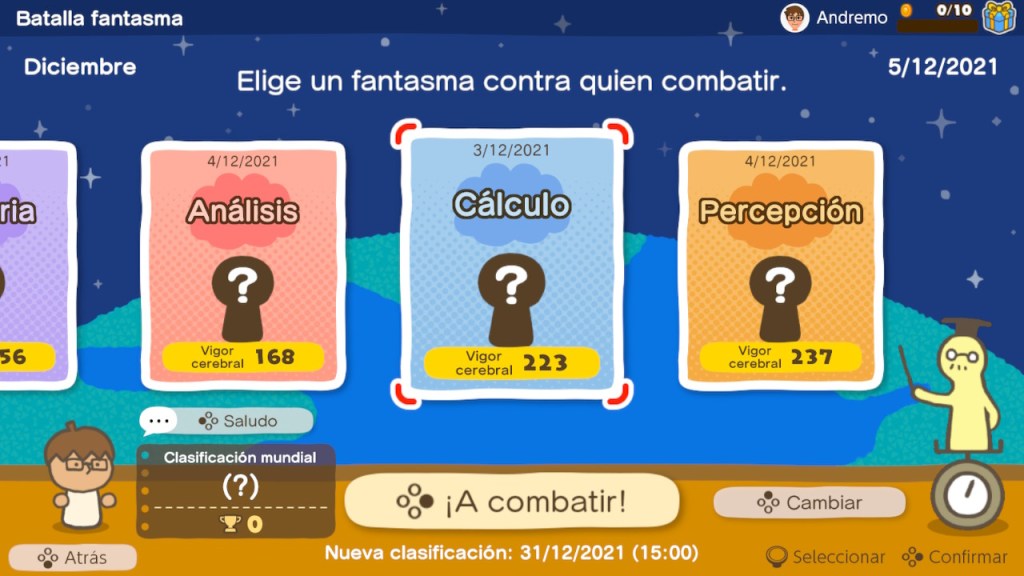 Así mismo, encontramos que el juego cuenta con el modo de fantasmas, donde podremos competir con jugadores de todo el mundo que estén pegados a Big Brain Academy: Brain vs. Brain y ver quien ellos tienen nuestra misma habilidad mental.