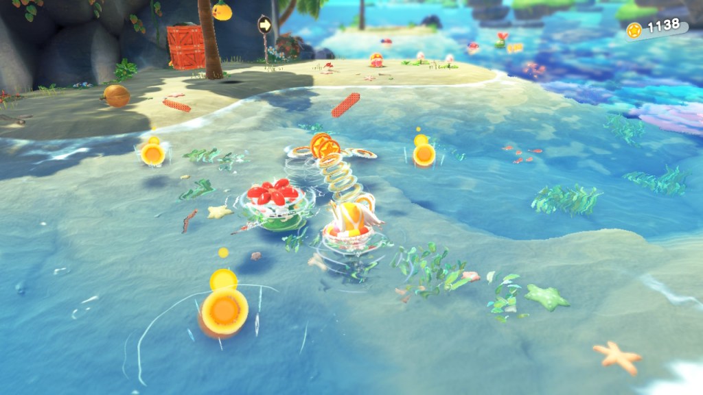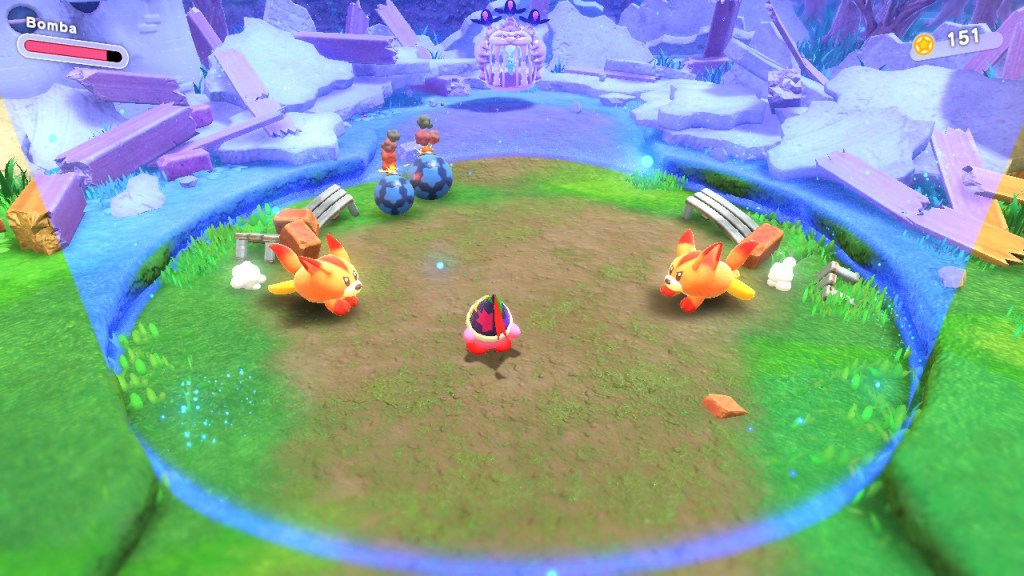 Cuando ingresamos en la partida, encontramos que el concepto de Kirby ha sido adaptado para esta entrega, permitiendo al jugador disfrutar del juego clásico de plataformas, bajo el concepto de las tres dimensiones.
