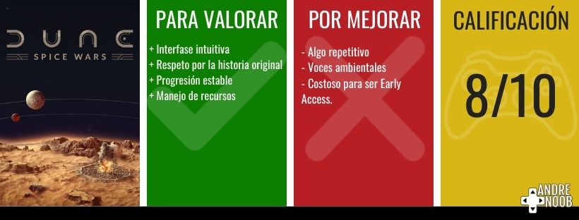 Dune: Spice Wars es un juego entretenido, recomendado para aquellos que inician en este tipo de juegos y para aquellos que quieren conocer aún más acerca del fantástico universo creado por Frank Hebert.