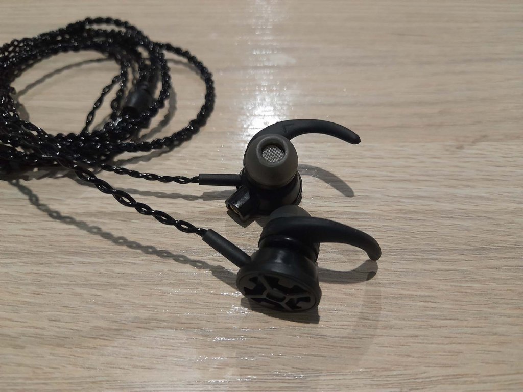 Al abrirlos, encontramos que vienen los auriculares con un cable trenzado, un puerto 3,5 mm y un sistema de control directo con micrófono incluido. Este último puede ser silenciado y permite que podamos usar este dispositivo como un manos libres tradicional, puesto que también cuenta con un botón multifuncional.