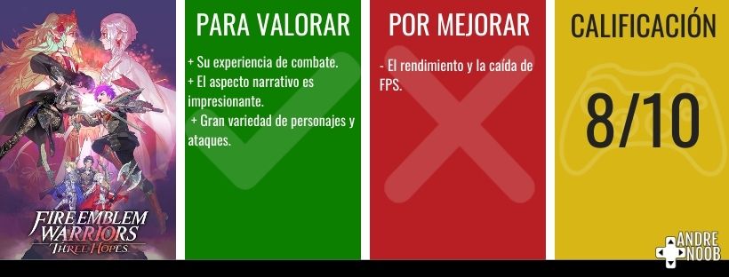 En resumen, Fire Emblem Warriors: Three Hopes es un título que vale la pena jugar, entregando una forma diferente de abarcar la historia de las casas de Garreg Mach y que te entregará unas buenas horas de diversión. Cabe aclarar que es recomendable para disfrutar más el juego, jugar en cualquier momento FE: Three Houses.