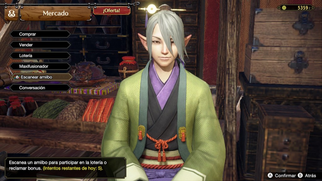 Para acceder a él, lo único que tenemos que hacer en la aldea Kamura es ir a hablar con el comerciante y le tenemos que pedir escanear Amiibo. Luego de esto, solo tendremos que poner la figura encima del mando y esperar que se active la lotería, que nos entregará una recompensa.