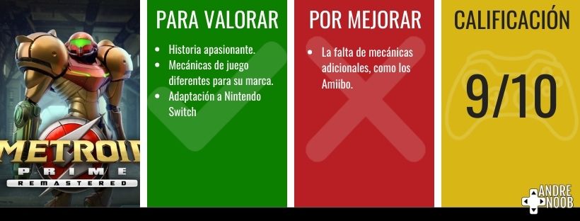 En resumen, Metroid Prime: Remastered es un título que vale la pena en Nintendo Switch. Su ambientación, experiencia de juego y mejora ante su versión original y demás adaptaciones, lo convierten en una joya obligada para los amantes de la consola. Los cuales podrán disfrutar aquí de una de las aventuras que jamás creyeron encontrar y, lo que es más, jugar en cualquier lugar.