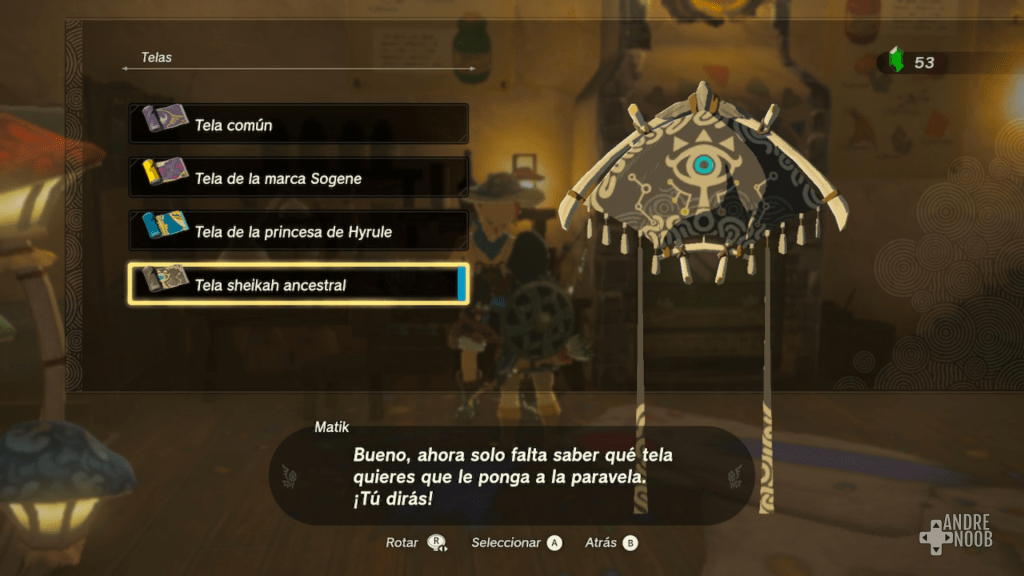 ¿Cómo cambiar la tela de la paravela en The Legend of Zelda: Tears of the Kingdom?