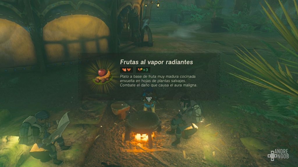 - Frutas al vapor radiantes: esta cocción consta de un Solirio y una manzana dorada. Al hacerla te recuperará seis corazones normales y tres rotos.