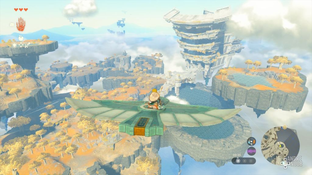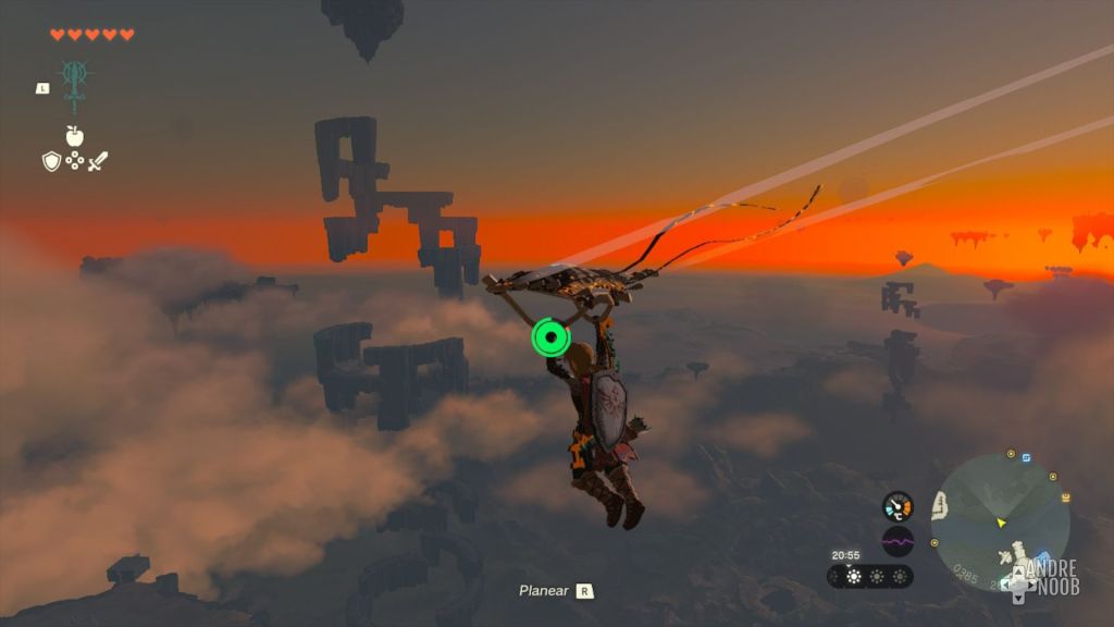 El primer espacio que conocemos es el cielo, el cual puede intimidar en ciertos momentos. Por ello debemos aprender a movernos entre cada una de las islas y conocer lo que tienen. De la misma forma, enfrentar a los guardianes Zonnan, los cuales pertenecieron a la antigua civilización y la mayoría de ellos te atacará al verte. De la misma forma, su tecnología te servirá para crear máquinas y cruzar el cielo, la tierra y el subsuelo.