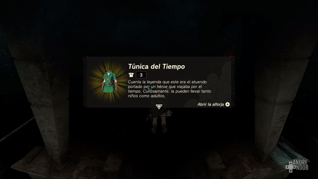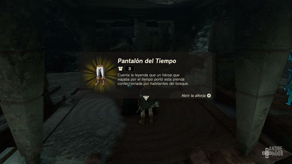 Aquí solamente tendremos que tomar un poco hacia el sur al momento de caer y seguimos la indicación del punto. Al llegar veremos una clase de santuario y ahí encontraremos el pantalón del tiempo.