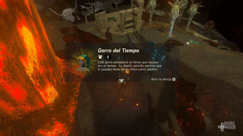 Luego de esto, simplemente tendremos que llegar hasta la cima a mano derecha donde está la lava. El lugar es muy caliente, pero luego de escalarlo, podremos encontrar el cofre con el gorro del tiempo.