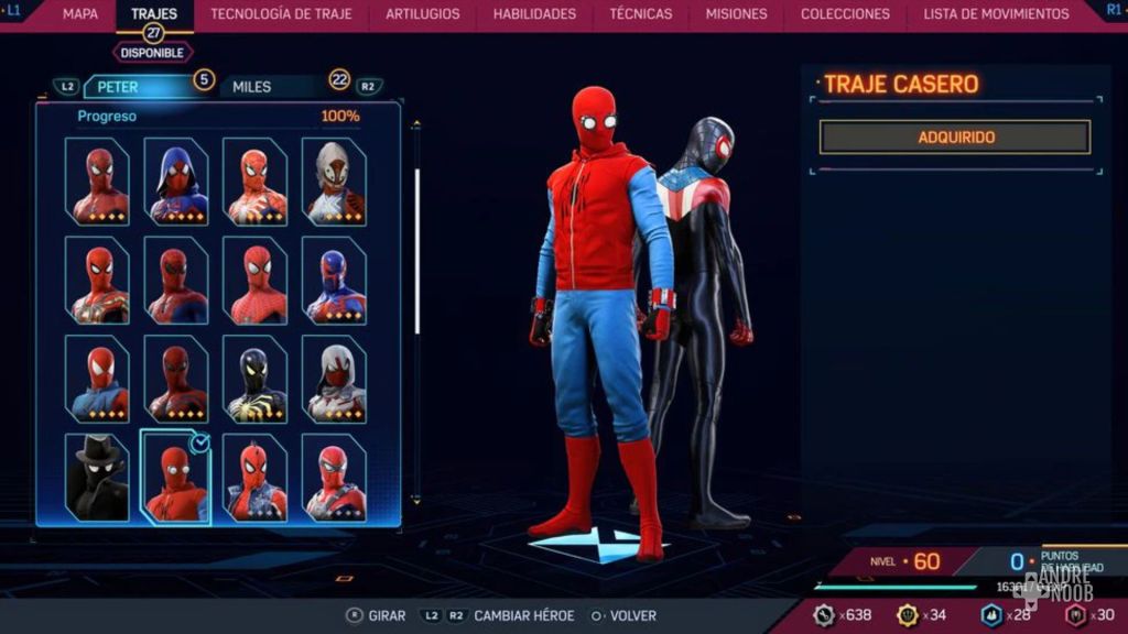 • Traje casero (Spider-Man: Homecoming): llegar a nivel 23.