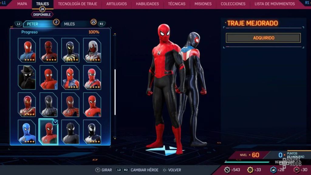 Cómo sucedió con el juego anterior, Marvel’s Spider-Man 2 cuenta con todos los trajes del UCM hasta la fecha. Incluyendo el que se vio al final de la última trilogía. Así que a continuación te diremos cuáles son y qué requerimientos debes cumplir para tenerlos: