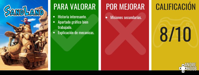 En resumen, Sand Land es título divertido y que respeta mucho la obra de Akira Toriyama. Siendo un bonito tributo para mantener su legado y contar una de sus historias favoritas. Algo que hace de maravilla y por ello, si eres fan de sus obras, tienes que jugarlo. Te sacará una sonrisa.
