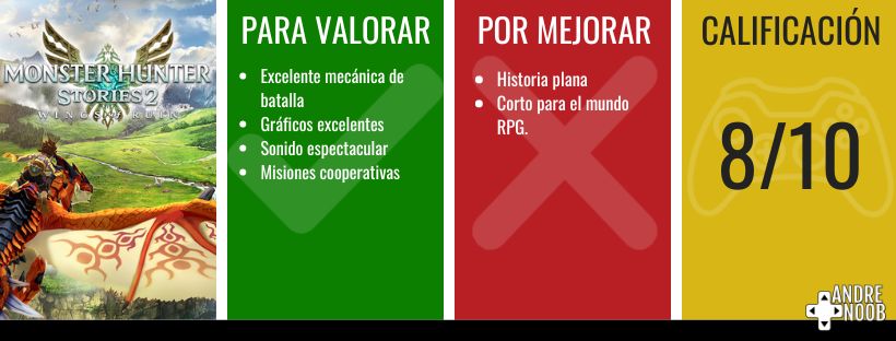 En conclusión, Monster Hunter Stories 2: Wings of Ruin adapta con éxito la fórmula clásica de Monster Hunter a un RPG por turnos. Celebra el vínculo entre humanos y monstruos, dejando espacio para el crecimiento. Es el tipo de fórmula que puede atraer a jugadores fanáticos de la serie o recién llegados al fantástico mundo de Monster Hunter.