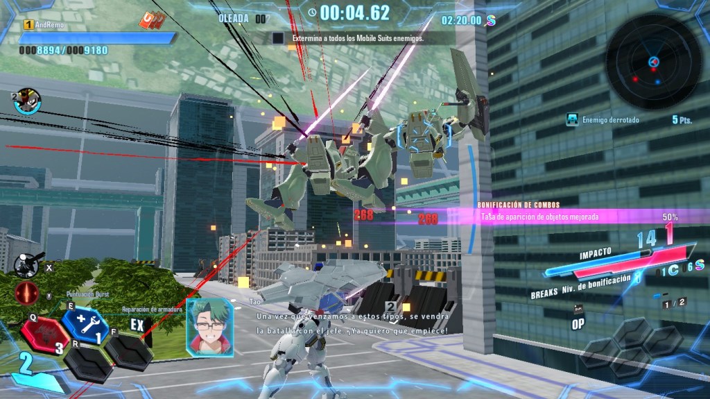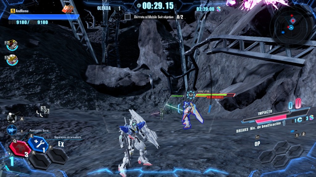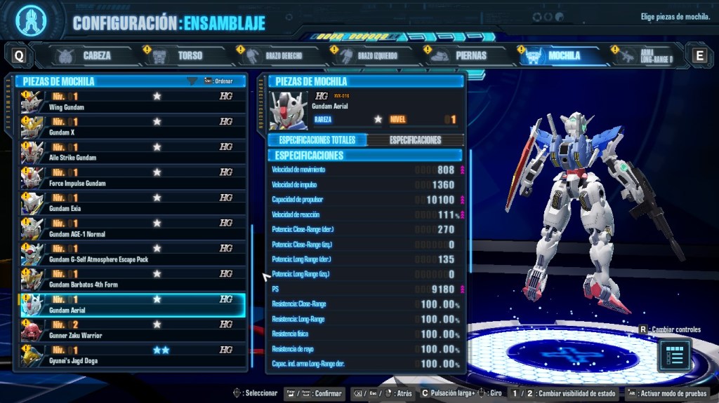 Sumado a esto, contamos que la amplia variación de modelos disponibles y la cantidad de piezas para armar nuestro Gunpla, es muy generosa. Facilitando entre cada combate, la creación de ese mecha que tanto hemos soñado, haciendo combinaciones únicas como la cabeza del Exia, el cuerpo del Aerial y los brazos del Barbados.