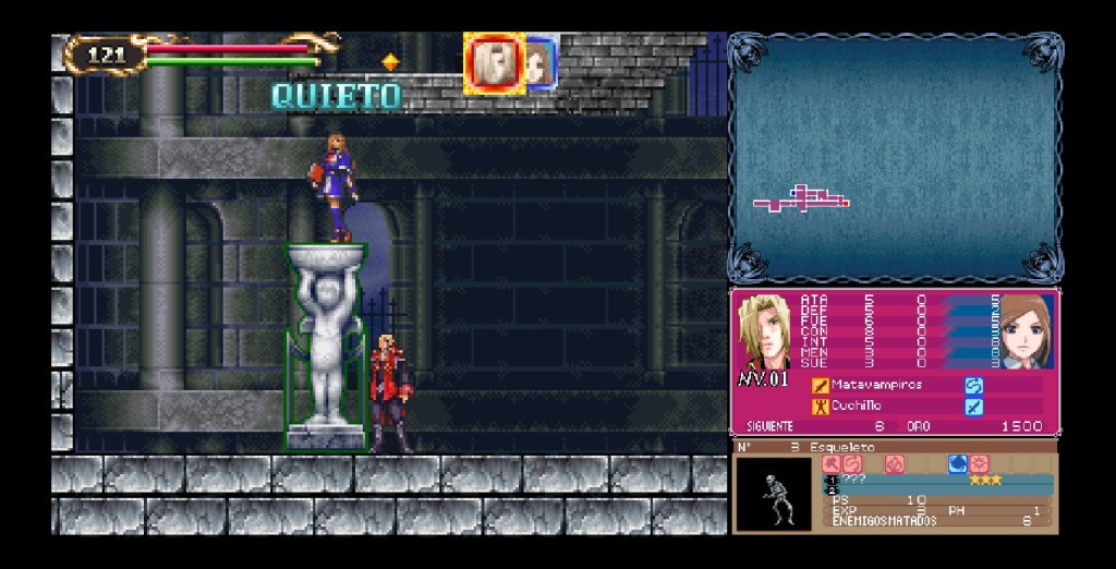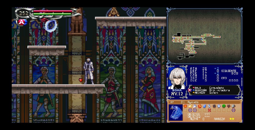 Pues bien, la primera sorpresa del Castlevania Dominus Collection, es que cada juego ha integrado todas sus pantallas en una misma. Permitiendo que los jugadores puedan usar lo que era la pantalla táctil, con el mouse en Steam o la palanca derecha con control. Manteniendo el marco interactivo que sorprende en cada título.