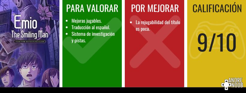 Emio: The Smiling Man – Famicom Detective Club es un juego que no esperábamos y sorprende demasiado en Nintendo Switch. Entregando una aventura diferente a lo que estamos acostumbrados y muy madura para su franquicia. Abriendo las puertas hacia la marca e invitándonos a conocerla un poco más.