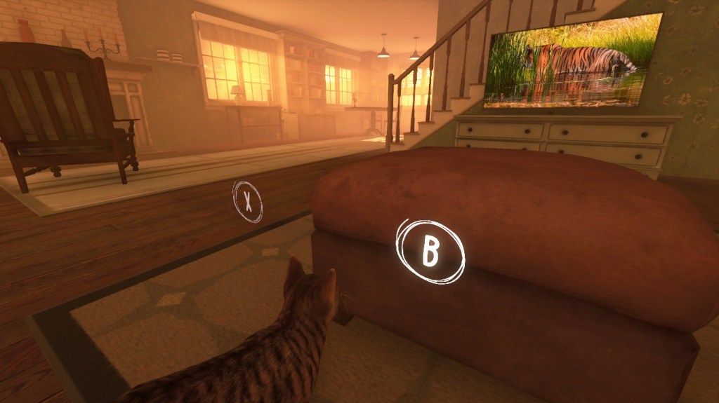 A pesar de iniciar como un juego narrativo, poco a poco vemos diferentes tipos de mecánicas usadas de manera bastante inteligente, desde acciones de reacción hasta secciones de sigilo, a veces nuestra misión es crear un desastre, a veces cazar al infortunado pájaro que se deje ver. También hay secciones que representan los sueños que aparecen en nuestro descanso, en los cuales dejamos de ser un simple gato doméstico para convertirnos en un gran felino, excelente cazador y protector de la manada.