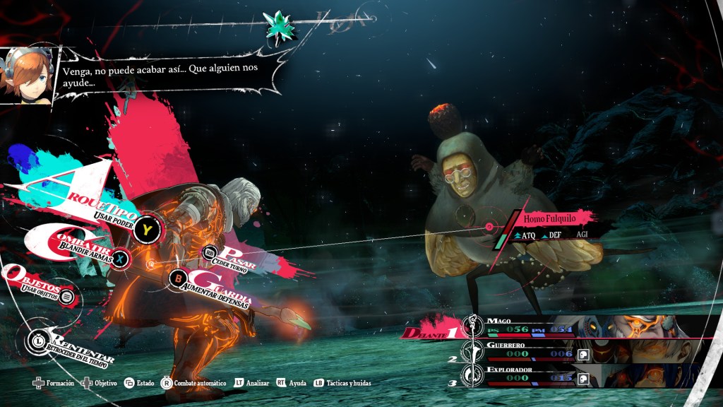 En la parte superior de la pantalla, podemos ver el número de movimientos disponibles. Estos son los que definen cuantos ataques realizaremos desde nuestro grupo y si usamos la habilidad síntesis, de los arquetipos, podremos hacer ataques combinados. Entregando emociones únicas en los enfrentamientos al ver la inmensidad del ataque.