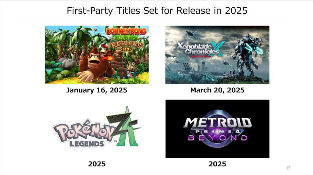 Varios de los juegos lanzados en 2024 tuvieron buena recepción, como lo fueron Zelda: Echoes of Wisdom (3.40M), Mario & Luigi: Brothership (1.84M) Super Mario Party Jamboree (6.17M).