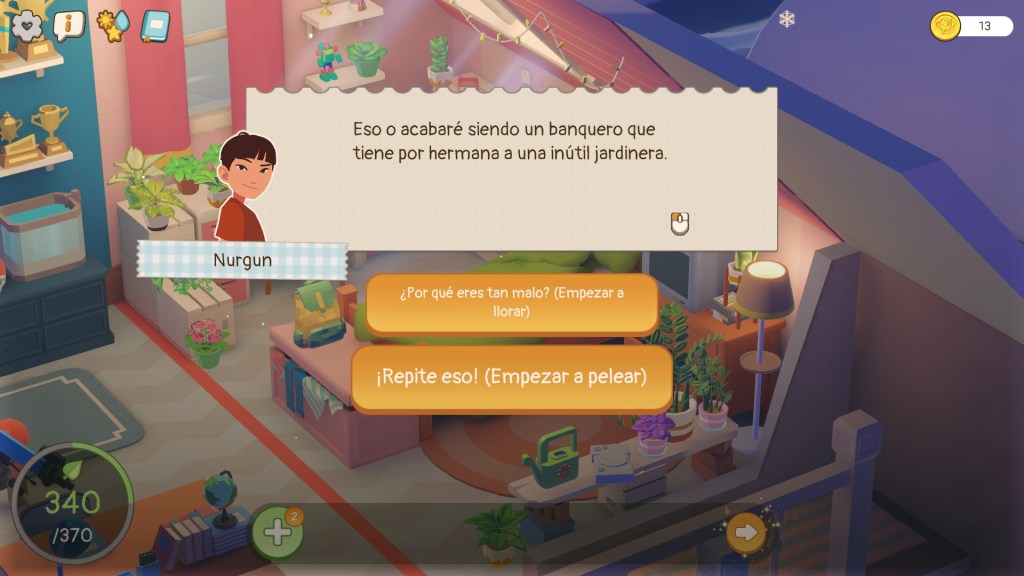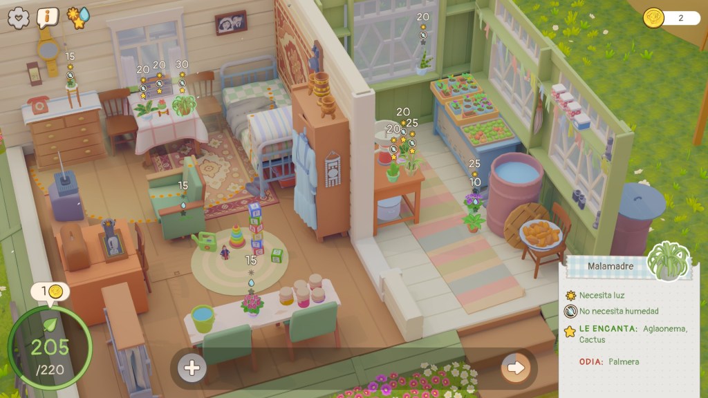 No obstante, esto último es totalmente a discreción del jugador, es posible poner plantas en el suelo, sobre los muebles y demás elementos del entorno sin ningún tipo de orden y al final vas a terminar el nivel. Me hubiera encantado, que el juego tuviera un parámetro más con que jugar, por ejemplo, limitar la cantidad de plantas que se pueden poner o completar el nivel usando la tienda X cantidad de veces.