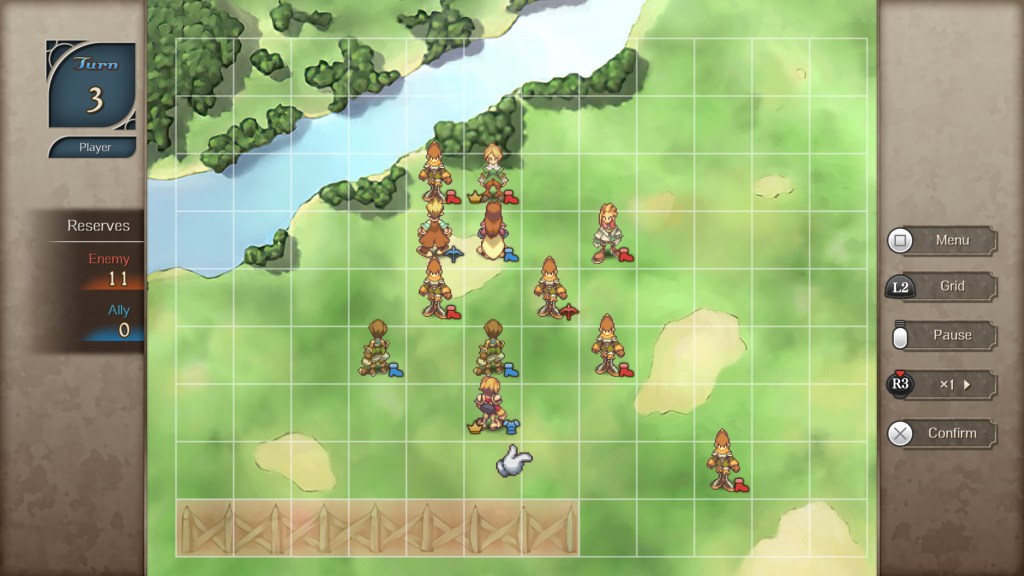 La tercera y final forma de luchar, son las «batallas campales» donde varias unidades de tu grupo se repartirán por el escenario avanzando estratégicamente hasta enfrentarse a una unidad enemiga en un solo turno. El triunfo se logra al destruir al ejército contrario o superar las líneas enemigas.