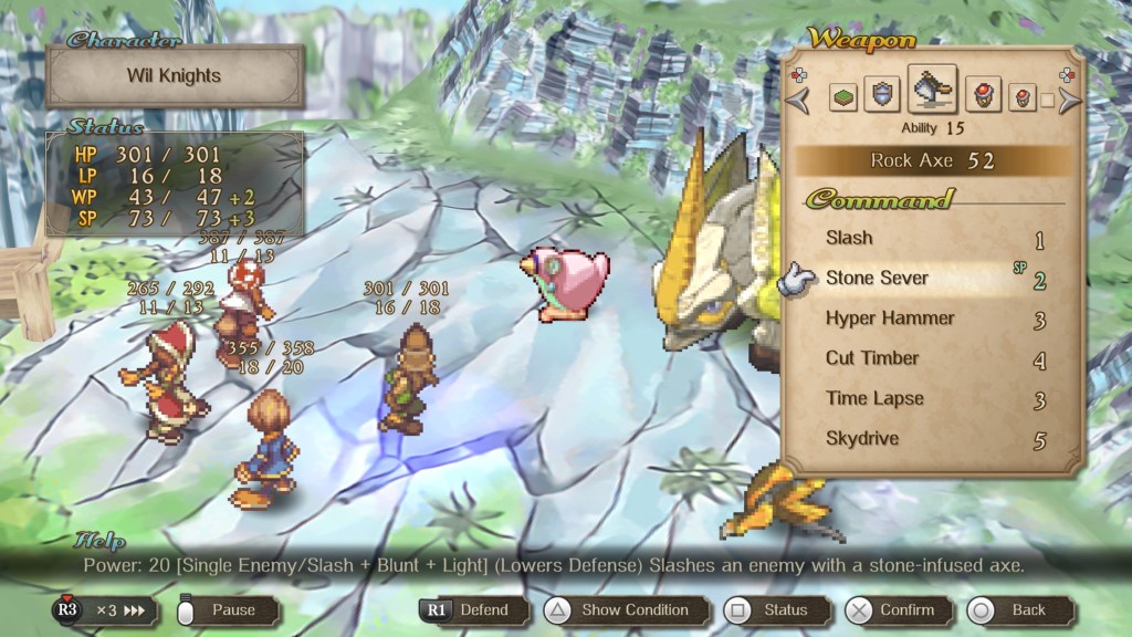El combate en SaGa Frontier 2 Remastered es esencial, por lo que deberás acostumbrarte a sus tres formas de jugar. Primero, todo se resuelve en combate por turnos clásico: eliges un ataque para cada uno de tus personajes, mientras que el propio juego determina el orden de las acciones según tus atributos y los de los monstruos.