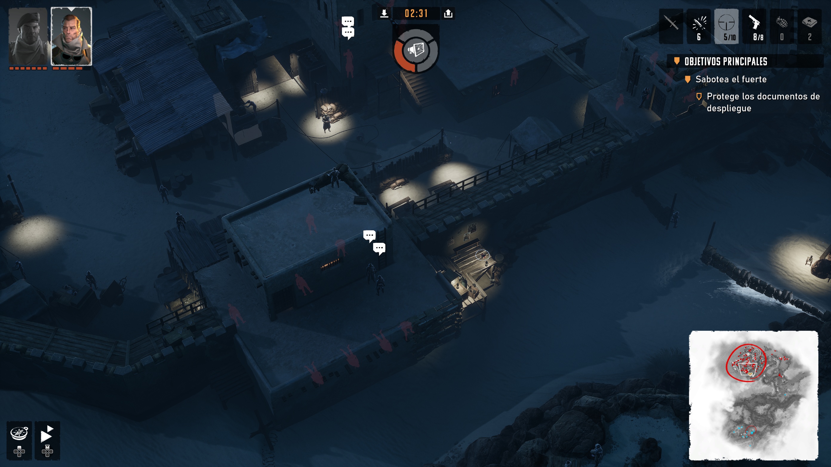 Continuamos con James Blackwood, este marine nos ayudará en la infiltración submarina y finalmente tenemos a Rene Duchamp, un espía, capaz de usar uniformes enemigos para infiltrarse. Cada uno de estos comandos cuenta con habilidades únicas, que deberás combinar y coordinar estratégicamente para lograr completar cada misión.