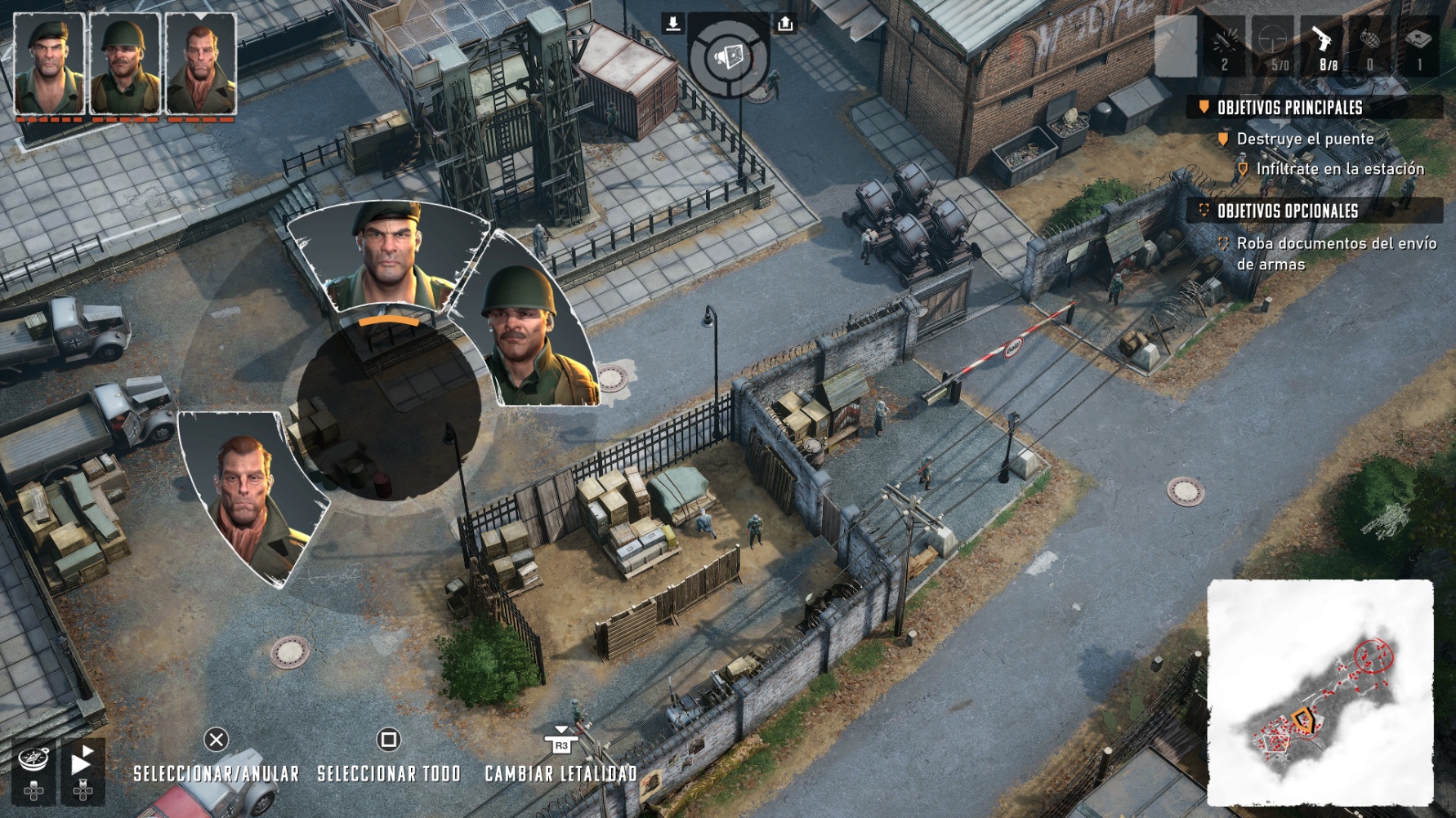 El núcleo de la saga Commandos siempre ha sido el sigilo táctico, y en Origins esta premisa se mantiene intacta. En cada escenario deberás ir con cautela eliminando uno a uno los enemigos, mientras completas objetivos principales y secundarios.