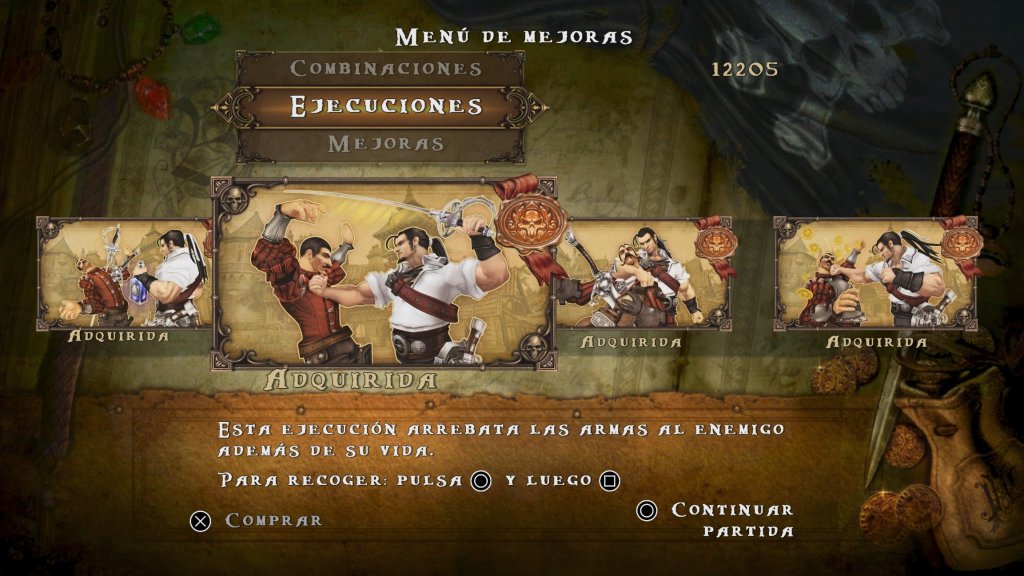 Por otra parte, y como buen pirata, Blood tiene una pistola de mecha, esta demora bastante en recargar, pero lo compensa con un gran índice de daño. Llegado el momento tus enemigos tendrán muy poca vida y un símbolo rojo flotará sobre sus cabezas. Este es el momento para usar las ejecuciones.