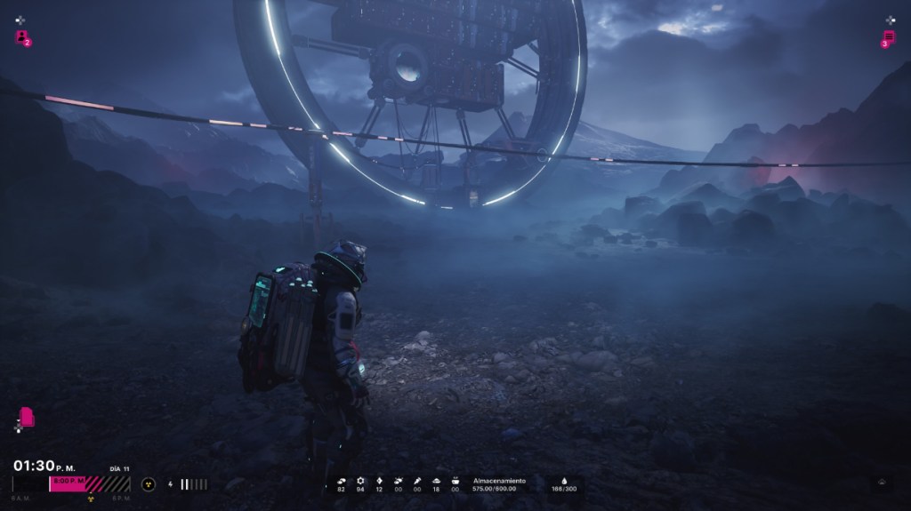 Fuera de mantener contento a tu grupo y gestionar la nave, el tiempo es tu mayor adversario. Cada día comienza a las 7 AM y concluye a las 8 PM, aunque la ventana para actuar puede reducirse aún más si las condiciones climáticas del planeta empeoran. Durante ese lapso, deberás explorar la superficie, recolectar recursos, gestionar la nave y cumplir con las demandas de los Alters.