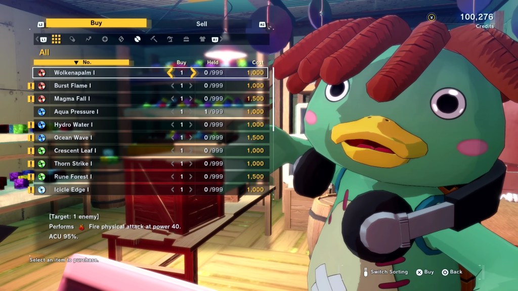 Con el Digimon en nuestras filas, es hora de agregarle habilidades y ataques, algunas vendrán junto con los datos recopilados, pero otras serán necesarias comprarlas en las diferentes tiendas de los lugares que visitemos.