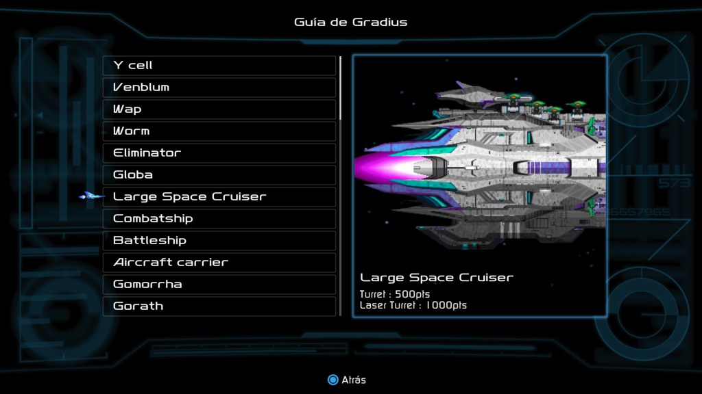 Para cuando necesites un respiro de jugar, esta colección incluye galerías visuales repletas de arte conceptual, bocetos y diseños originales que muestran el proceso de desarrollo y evolución de la saga. También hay una galería de audio donde puedes escuchar todos los temas clásicos y versiones modernas de la música de Gradius y Salamander. Y aún hay más, podrás visitar una guía interactiva donde puedes ver los modelados de enemigos y jefes, más un par de datos extra.