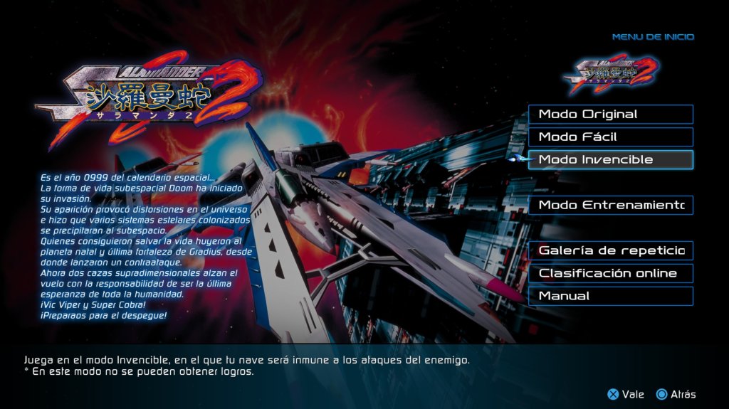 La colección también incluye modo fácil y una modalidad invencible, esta última pensada especialmente para que los más pequeños puedan disfrutar la saga sin frustrarse por la dificultad clásica; en este modo, tu nave no puede ser destruida y puedes explorar libremente los escenarios y efectos.