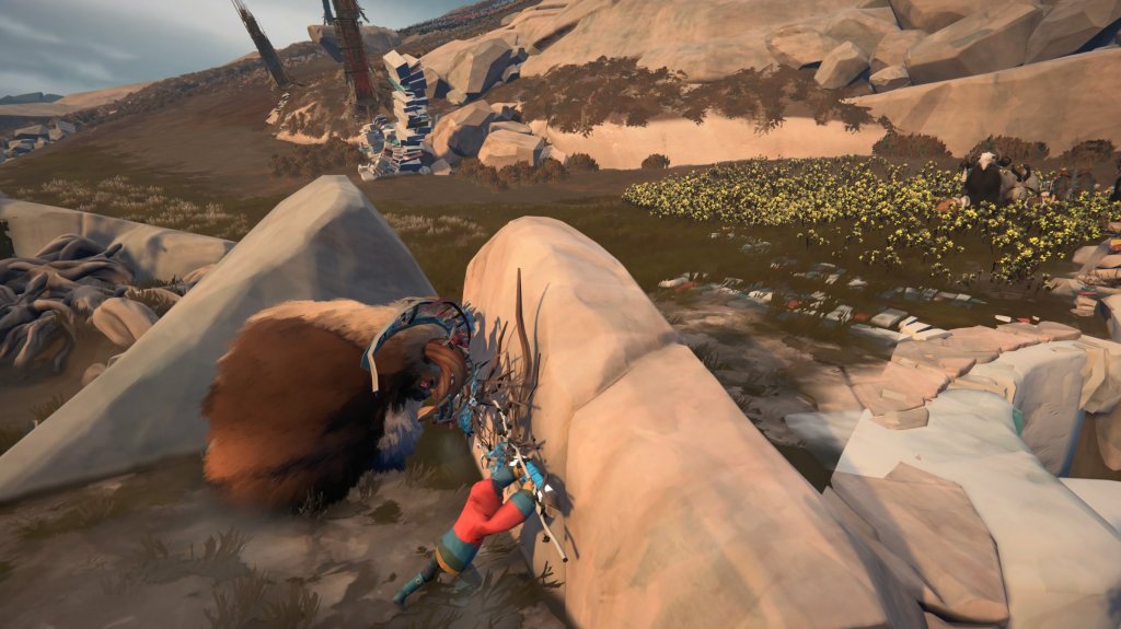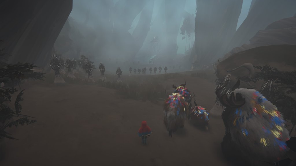 Controlar al rebaño de calicornios es muy sencillo, basta situarte detrás de ellos y pulsar L2/LT y se moverán siguiendo un marcador que traza el camino frente a ellos, guiando suavemente su recorrido. En este viaje, la ayuda fluye en ambos sentidos, ellos te ayudan a superar obstáculos, usando su fuerza para abrir puertas o permitiéndote alcanzar lugares elevados apoyándote en los más pequeños.