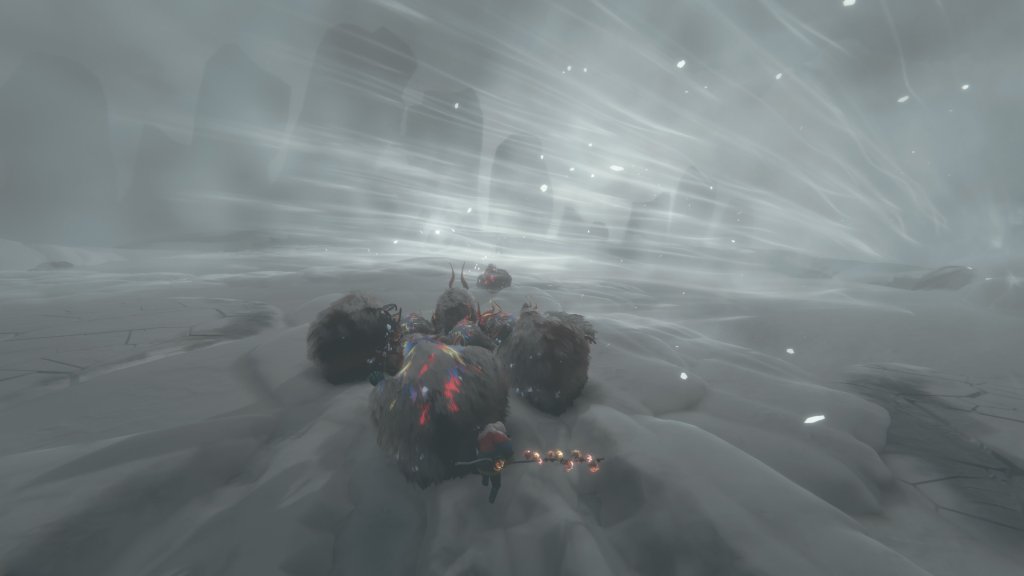 El rebaño correrá a toda velocidad y aunque será un poco difícil de controlar, es la forma más rápida de atravesar matorrales o zonas con mucha nieve. Para recargar esa energía deberás guiarlos hacia flores azules o rojas, pudiendo encadenar una serie de estampidas.