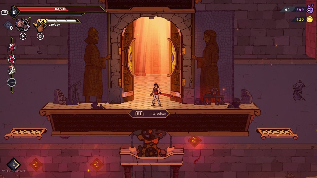 Como roguelite, deberás gestionarás recursos que se mantienen luego de cada muerte, las Cenizas de Alma sirven para desbloquear armas, fabricar medallones y activar mejoras en el Oasis, la experiencia también se mantiene, tiendo un árbol de habilidades que te ayudará a ser más veloz, tener más pociones de curación y más espacios de medallones.