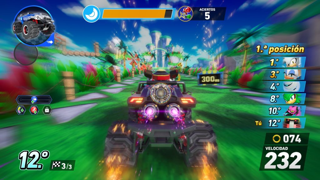 Como en todo juego de carreras, la dificultad aumenta poco a poco mientras aprendemos los atajos, los poderes y nos adaptamos a la velocidad. Sonic Racing: CrossWorlds no es la excepción, pero si vienes de otros juegos de carreras, acostumbrarte a esta nueva forma de derrape te costará un poco.