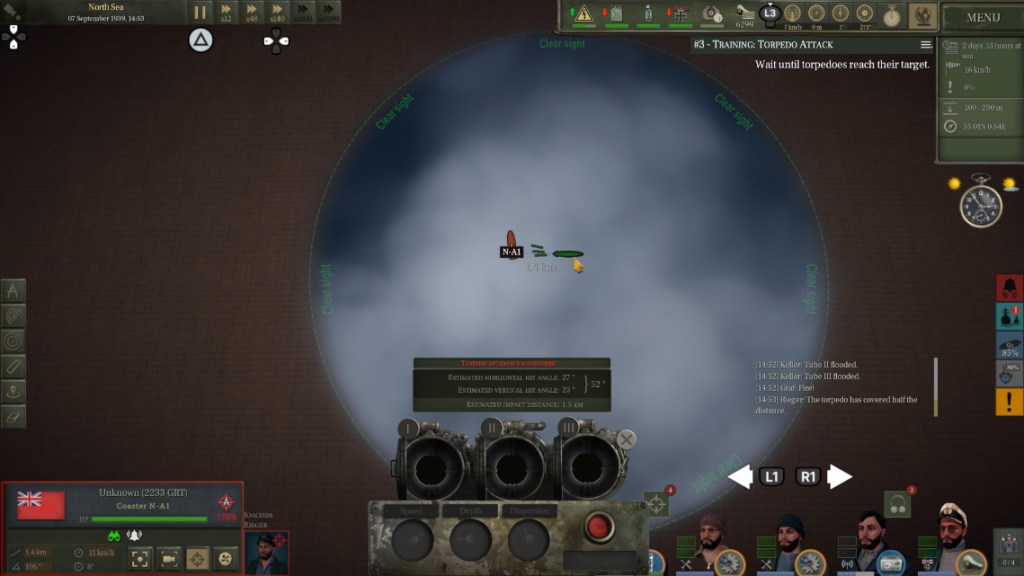Debo advertirte que la curva de aprendizaje es bastante exigente, y con el juego completamente en inglés, la dificultad aumenta mucho más. Sus mecánicas requieren paciencia y dedicación; avanzar significa aprender y, muchas veces, morir para intentarlo una vez más. Uboat cuenta con un nivel de simulación muy alto, por lo que la diversión puede perderse si no te gusta estar en constante tensión.