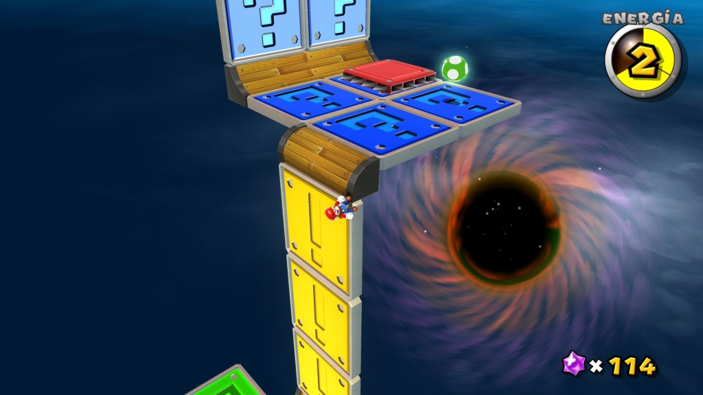 En esta aventura, cambiamos el observatorio de Rosalina por la Nave Estelar Mario. Este pequeño mundo funciona como nave y con las estrellas que vayamos recogiendo en el planeta, podremos avanzar en el universo.