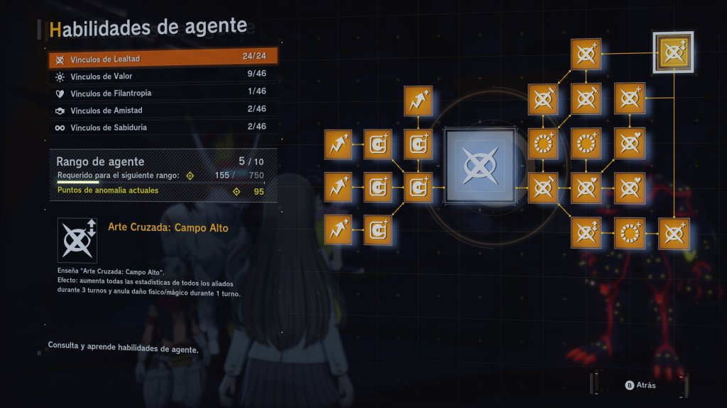 Con esos puntos puedes acceder a cinco árboles de habilidades para mejorar tus Digimon y desbloquear nuevas Cross Arts. Un árbol potencia la experiencia recibida, mientras que los otros cuatro se centran en subir estadísticas según la personalidad de cada criatura, haciendo que las evoluciones tengan aún más peso.