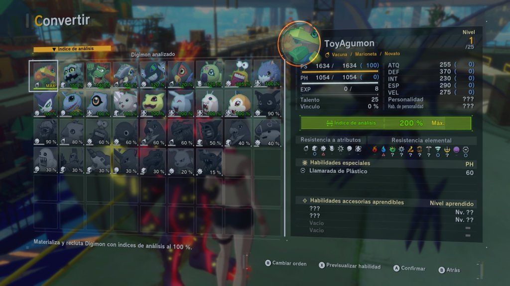 Como sabrás, la digievolución no es lineal ni fija como en Pokémon. Dependiendo de parámetros como ataque, defensa, inteligencia y especial, cada Digimon puede evolucionar hacia diferentes formas. En caso de que no te guste una evolución, puedes revertirla, aunque cada cambio reinicia el nivel a uno, lo que implica un proceso de subir de nivel continuo.
