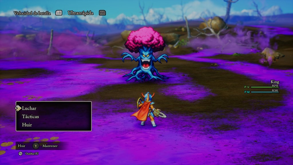 Y es que Dragon Quest sufre de subidas de dificultad sin avisos. Puedes estar eliminando monstruos afuera de una mazmorra sin problemas, y cuando entras en ella, hasta un burbujilimo te puede eliminar. Por eso el grindeo es algo constante y pesado, sobre todo en la recta final del juego.