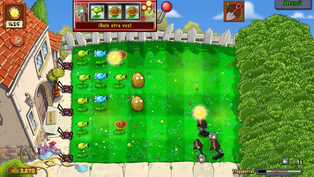 Por lo que deberás gestionar los soles que van cayendo, junto a los que recojas de los Girasoles, para ir plantando tu ejército vegetal y proteger tu hogar de los zombis.