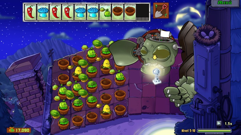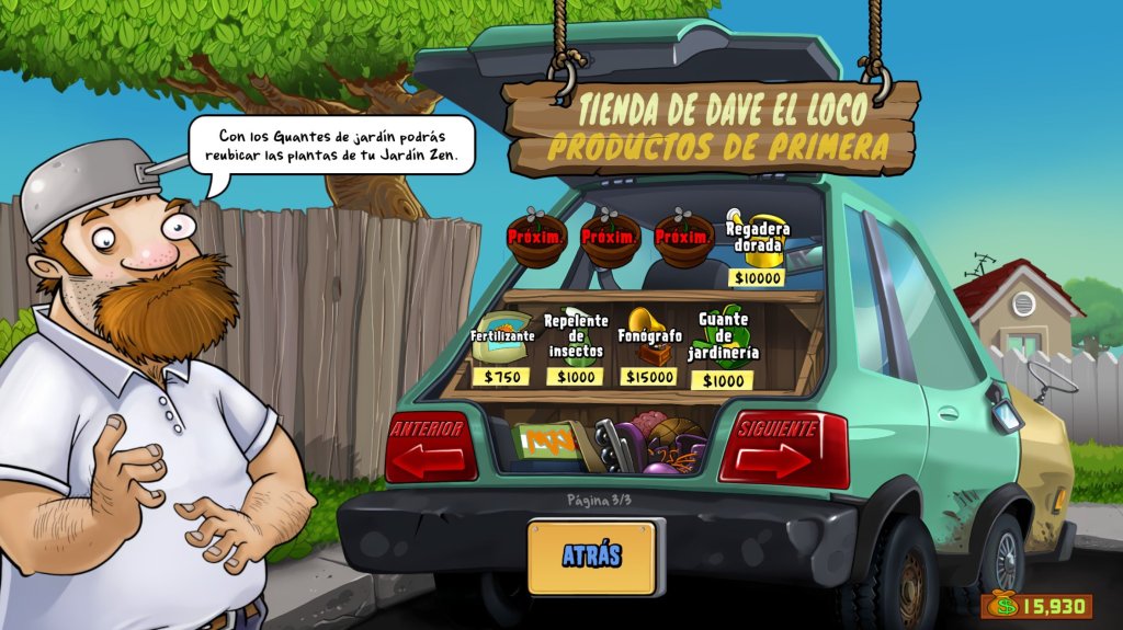 Mientras juegas te recomiendo visitar la tienda del loco Dave, este lugar te permite comprar nuevas plantas y mejoras con las monedas que vas recolectando en la partida, lo que permite construir un arsenal a tu estilo.